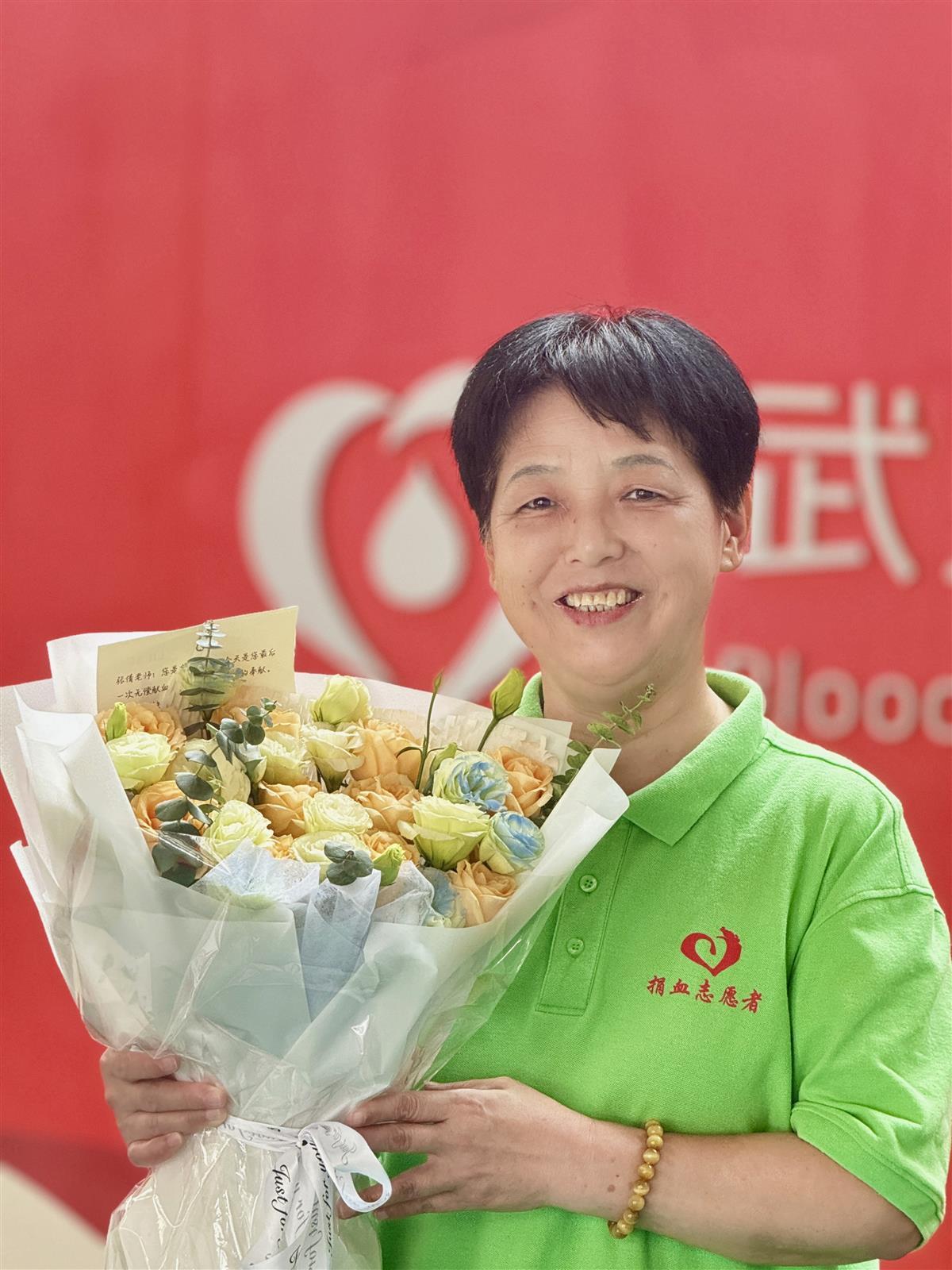 “倩姐,祝您生日快乐!”当天,武汉市无偿献血志愿者协会的队友们也赶来为张倩庆生,送上鲜花,献上纪念奖牌,武汉血液中心成分献血科副主任谢松丽、谢晋及当班的医护人员为张倩送上了蛋糕,感谢张倩多年来的热血奉献。