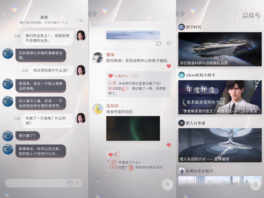 为了增加玩家在游戏世界的沉浸感,乙游会通过创造一些现实生活中的场景,给予玩家一种“我在和真人谈恋爱”的感觉。比如点开游戏中玩家的“手机”,会发现她拥有和现实手机十分接近的通信软件——不仅可以和男主角发“微信”,还可以给游戏中的人物朋友圈点赞、评论互动,甚至还可以点开游戏中的“公众号”,查看游戏世界里的新闻报道。
