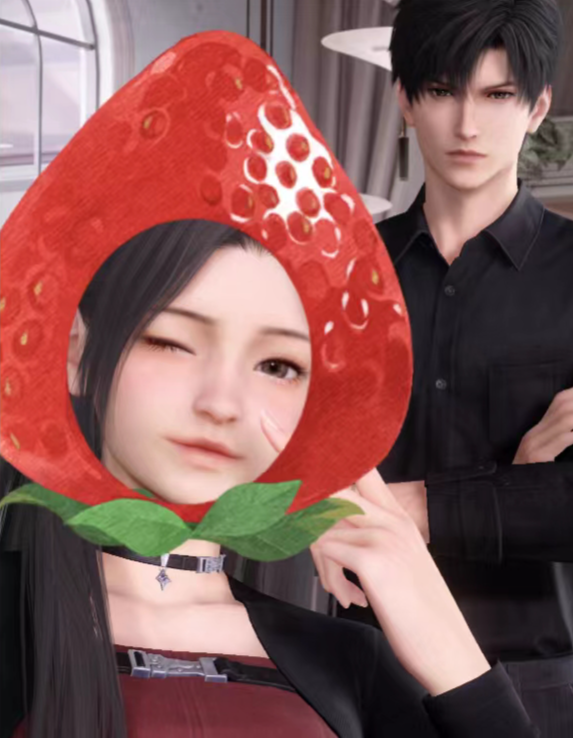 让玩家安安格外喜欢的还有游戏里“拍大头贴”的功能。“我在现实生活中就很喜欢拍照,在乙游里也和我最喜欢的角色有拍合照。”照片上,是虚拟的“安安”与她的游戏男友,她将这张照片放在了她游戏里朋友圈的背景图上。