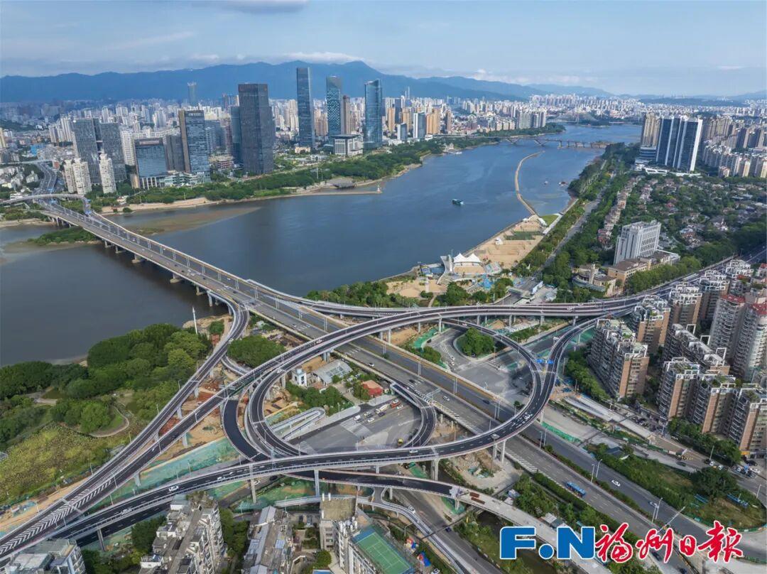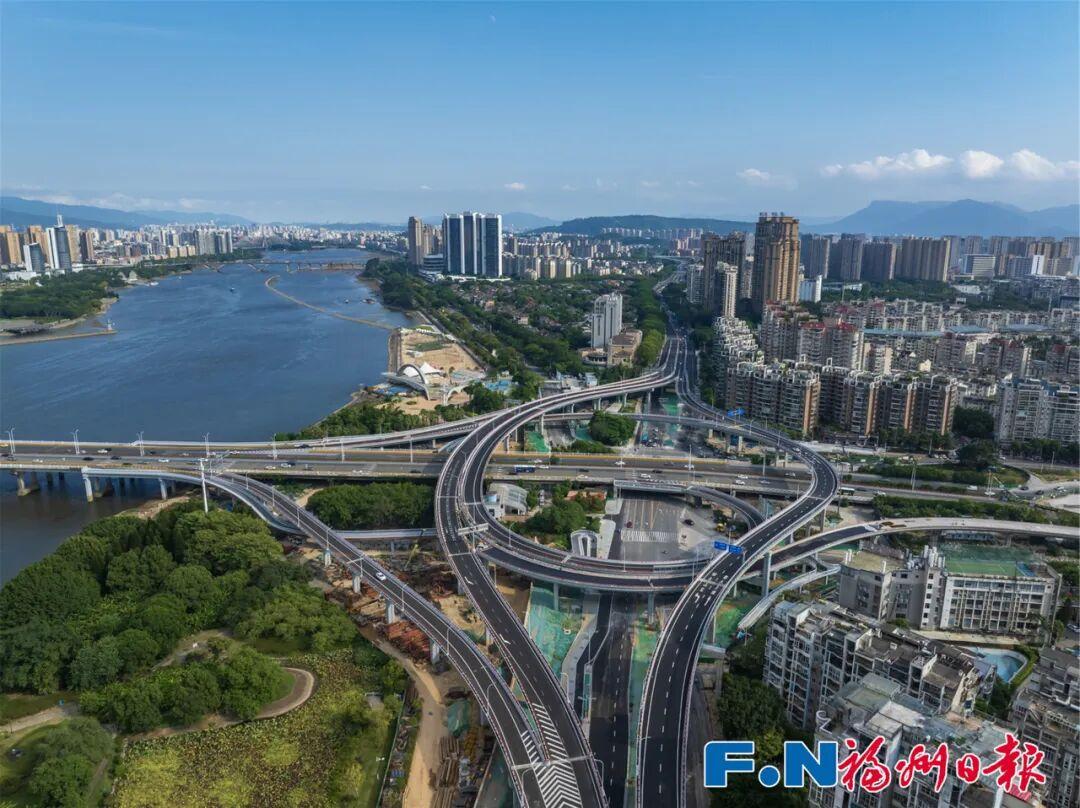 作为城区缓堵“利器”,金山大桥西互通立交与已完工的尤溪洲南立交提升改造工程、工业路(杨桥路—上浦路)提升改造工程共同组成一条快速通行的大通道,实现尤溪洲大桥、闽江大道与金山大桥之间的快速交通转换。同时,尤溪洲南立交—闽江大道—金山大桥的连续流通行,能形成快速、有效的分流通道,释放“1+1>2”的城区缓堵交通效应,有效缓解尤溪洲大桥的通行压力。