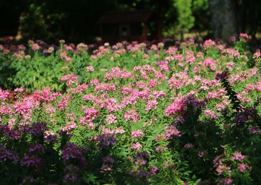 醉蝶花(学名:Tarenaya hassleriana),白花菜科醉蝶花属一年生草本,又名凤蝶草、醉蝴蝶、紫龙须等。掌状复叶,小叶5-7,椭圆状披针形或倒披针形;总状花序,苞片叶状;花瓣呈红、淡红或白色,瓣片倒卵状匙形;果长5-6.5厘米,密布网状纹;种子褐色,径约2毫米,近平滑;花果期3–10月。其花形别致,盛开时雄蕊细长伸出,宛若蝴蝶飞舞,故名“醉蝶”。原产热带美洲,我国多地均有栽植,是优良的观赏和蜜源植物。