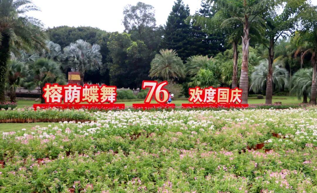 移步间,观“飘带”之流美,感“古榕”之苍劲,赏“蝶影”之灵动,品“草帽”之闲情。每一处造景都在为美丽祖国书写故事,共同构成“榕荫蝶舞欢度国庆”的盛大图景,“76”数字承载着非凡的意义,是历史与现实的深情对话。让我们对祖国的深情,随花绽放而愈发深沉,如花绚烂而永不褪色,愿祖国如古榕般根深叶茂,似灵蝶般振翅腾飞!