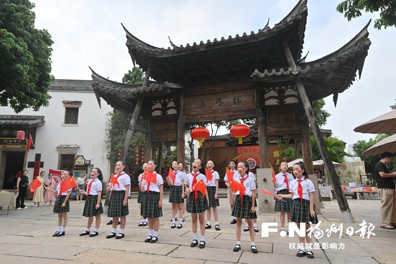 10月1日上午,上下杭历史文化街区迎来一场纯真温暖的快闪演出,福州小茉莉合唱团的孩子们在古厝街巷以歌声为时代喝彩,唱响动人乐章,为共和国献上真挚的祝福。《福》的优美旋律率先响起,随后《我和我的祖国》的深情告白与《今天是你的生日,中国》的诚挚祝福接连唱响,孩子们清澈的歌声吸引了往来人群。没有华丽的舞台,只有真挚的演唱,游客与市民纷纷驻足参与,汇聚成一片情感的暖流,展现了音乐凝聚人心的非凡力量,现场洋溢着节日的喜庆氛围。