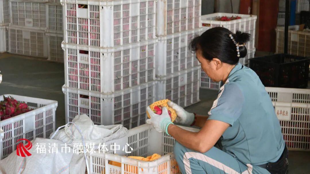 据了解,目前基地内的火龙果种植面积约650亩,涵盖十几个不同品种。其中,“金都一号”品种种植最多。该品种外观饱满圆润,口感甜蜜多汁,在市场上备受青睐。基地负责人林仕武告诉记者,采摘下的火龙果主要通过市场批发、电商平台、零售等途径,销往浙江、上海、北京、福州等地。