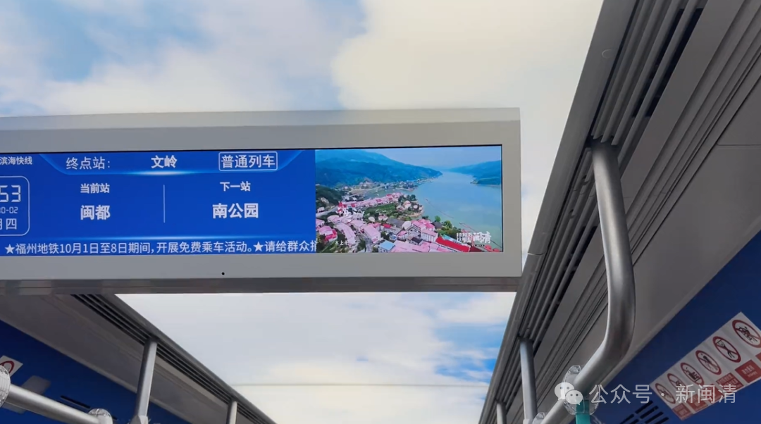 步入地铁车厢,仿佛踏入了闽清“沉浸式展厅”。循环播放的宣传视频中,宏琳厝的飞檐翘角尽显古厝风华,白岩山的群峰竞秀演绎自然壮阔,村唱舞台的热情洋溢传递乡土活力,七叠温泉的舒适惬意让人身心松弛。