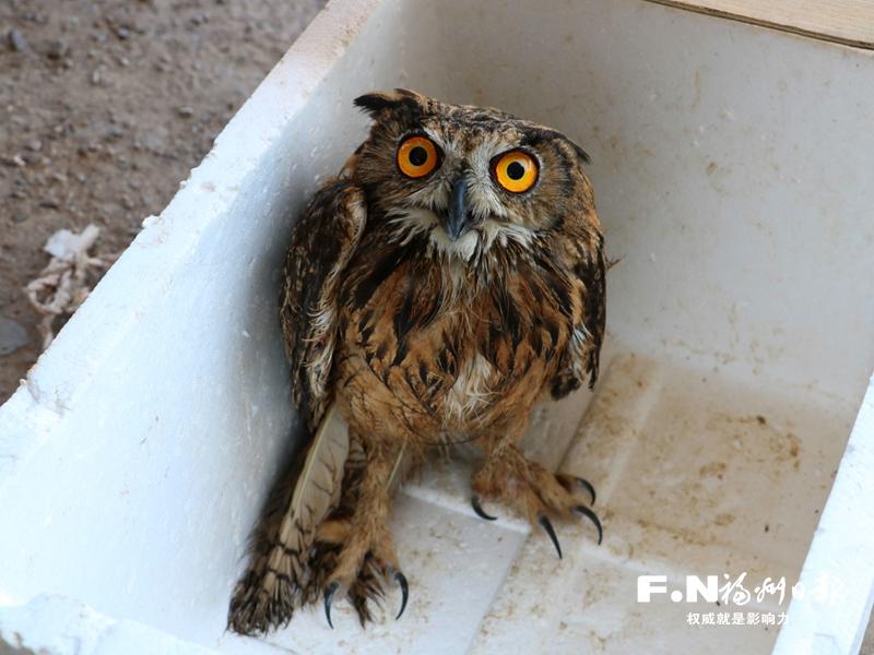 “我这渔排网上挂了只猫头鹰,救下来后它赖着不走,脚好像受伤了!”5日8时许,福州海警局罗源工作站接到渔排主的求助电话,一场针对国家二级保护动物长耳鸮的救援行动随即展开。