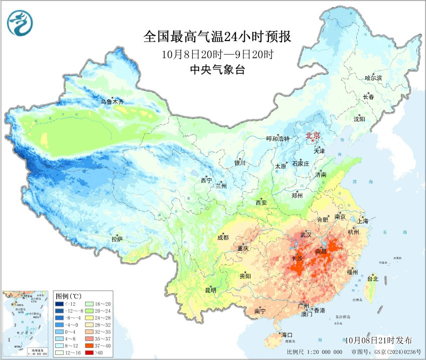 据知天气App显示,10月8日0时至21时,全省多个站点最高温直逼39℃+。