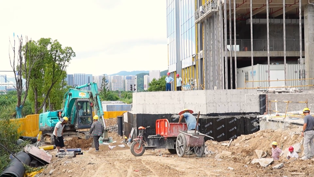 记者来到位于高新区马排村的隆恒科技生产基地项目现场看到,5栋大楼主体结构已全面封顶,工人们正抢抓晴好天气,积极推进雨污管网敷设、外墙防水工程和景观铺设等工作,室内室外工程同步推进,衔接紧密,呈现出一片繁忙而有序的秋日奋斗画卷。