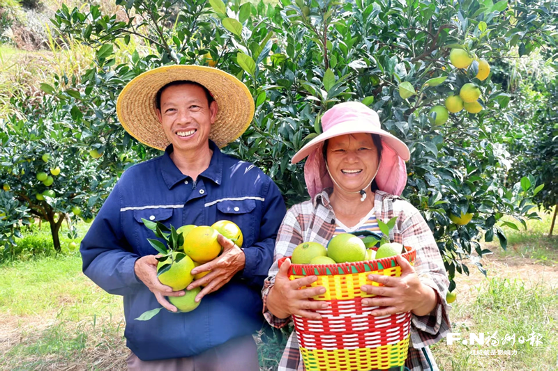 采摘脐橙后,果农脸上笑盈盈。(连江县融媒体中心供图)
