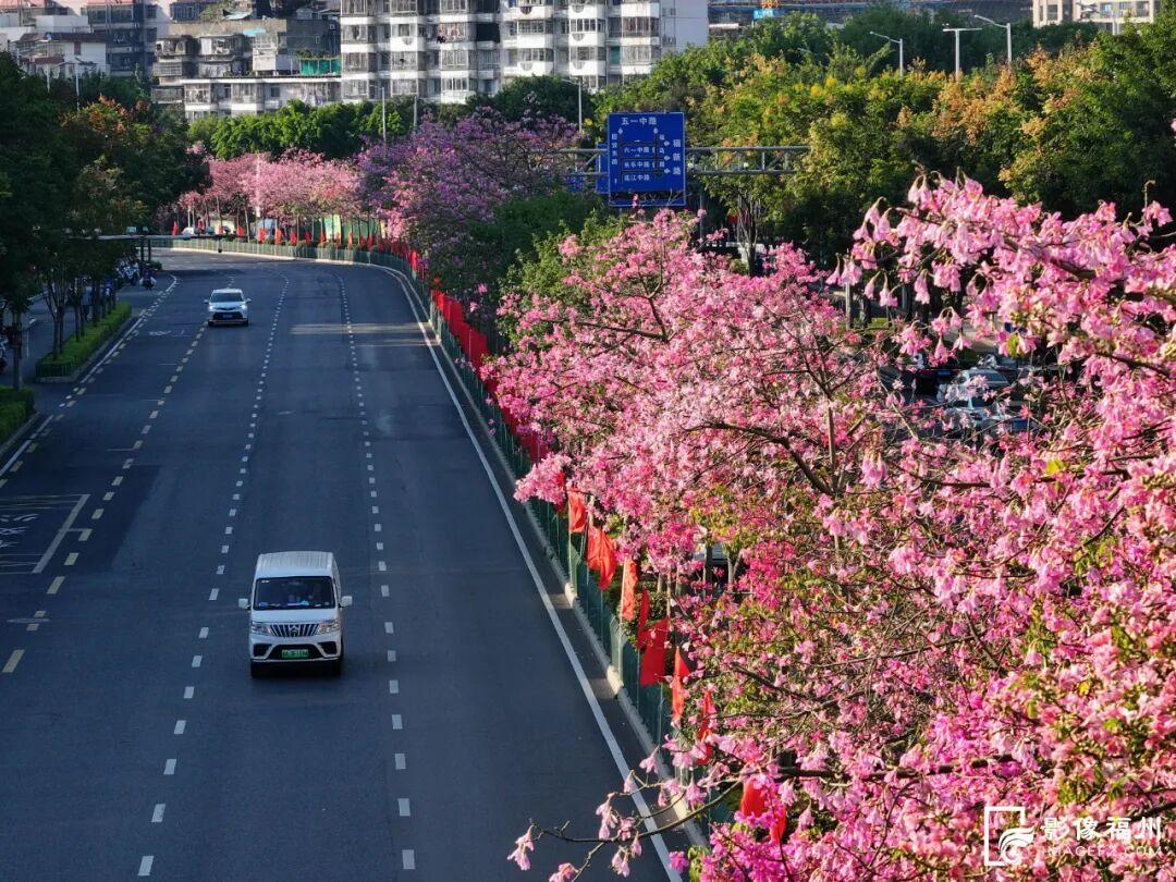 ▲福州街头的美丽异木棉满树缤纷 池远/摄