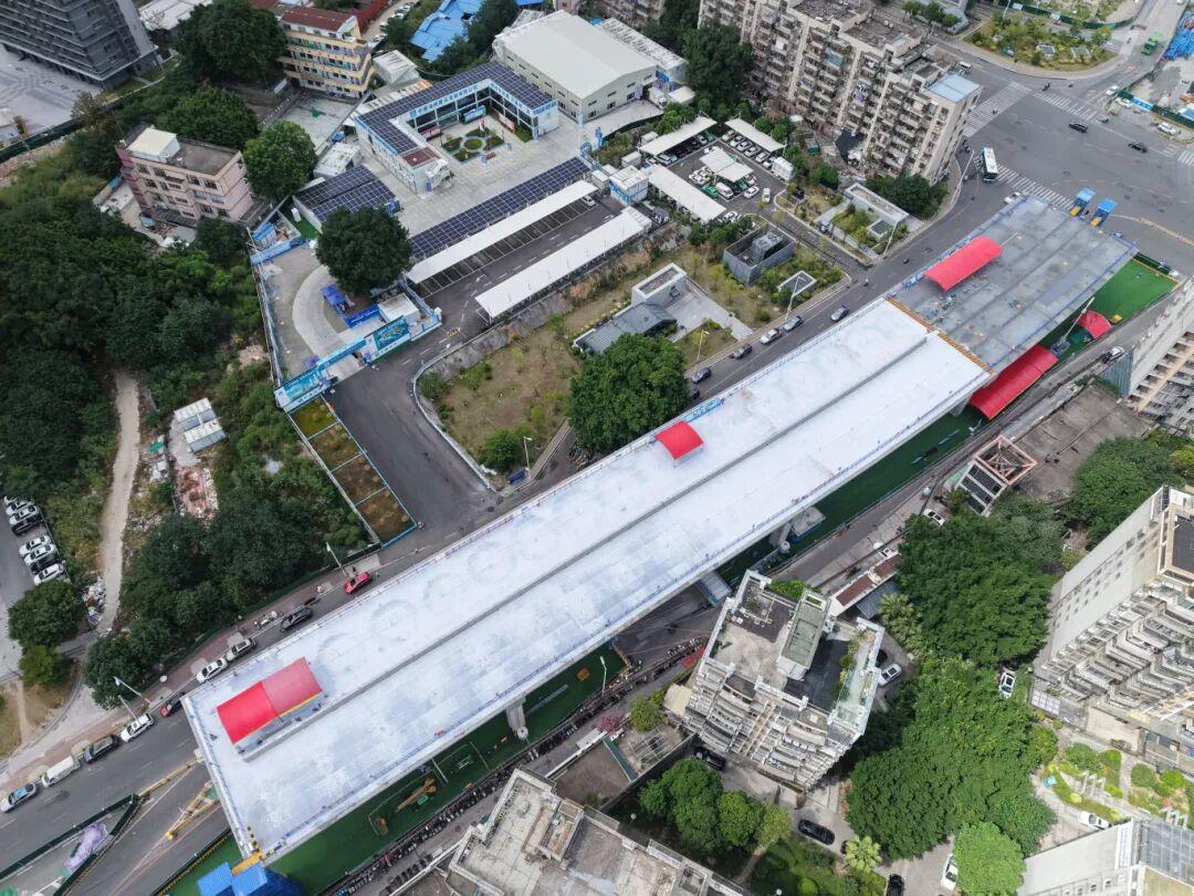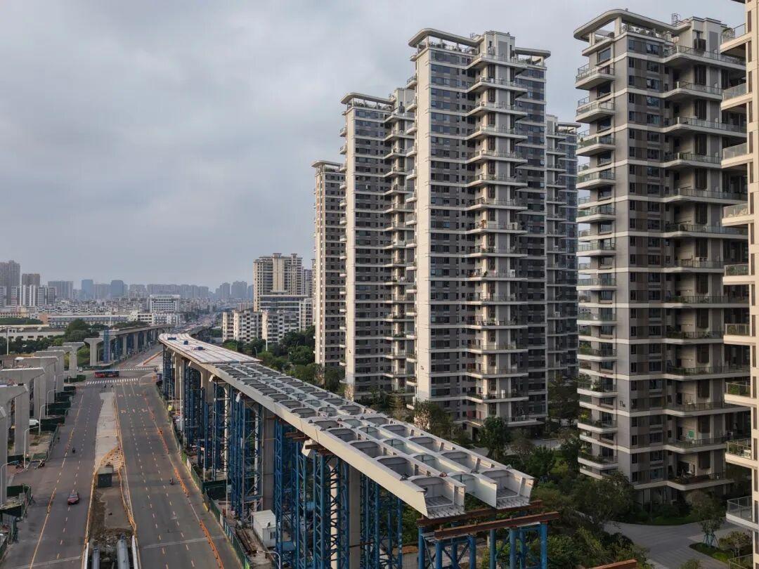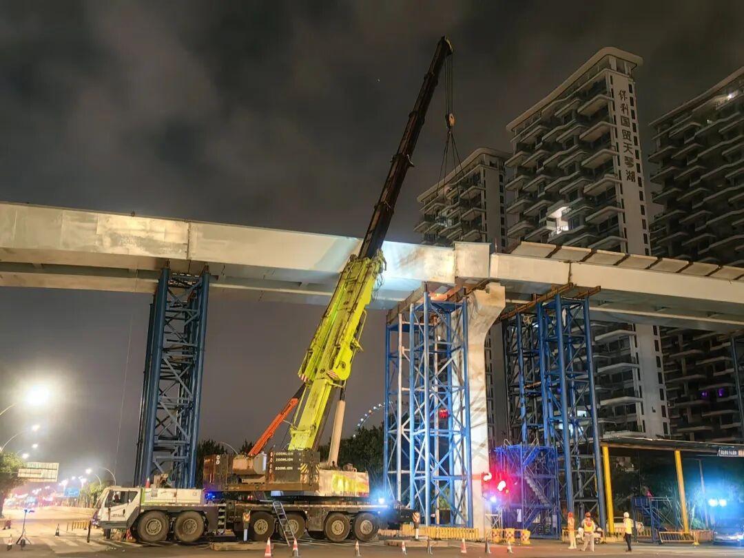此次合龙的跨福新路路口段钢箱梁施工技术复杂、精度要求极高。项目团队不断优化施工方案,克服夜间照明不足、交叉作业干扰等困难,最终圆满完成钢箱梁合龙任务。