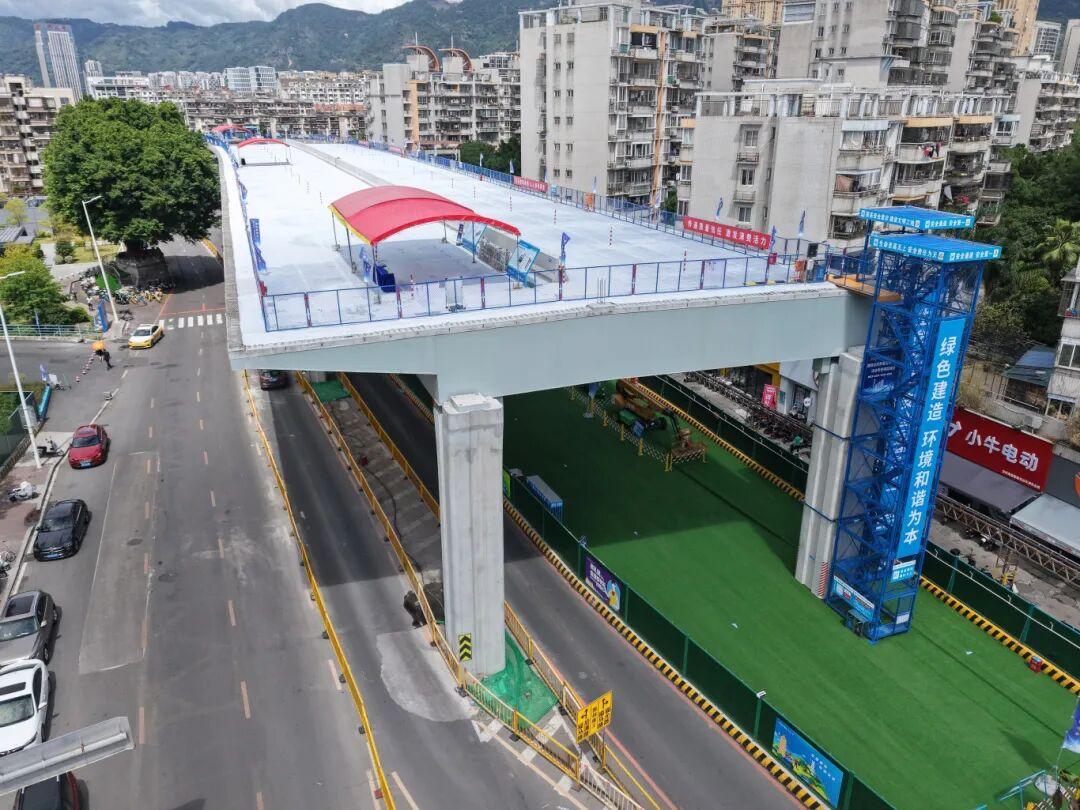 此外,在前横路快速化改造工程福马路至前屿路段施工现场,一段长达194米的主线桥钢梁凌空架设,创下福建省同类桥梁装配施工新纪录。