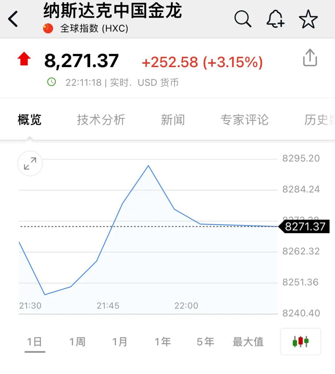 热门中概股涨幅不断扩大,截至发稿纳斯达克中国金龙指数涨超3%。阿里巴巴、百度涨近5%,拼多多涨3.4%,京东涨近4%,富途控股涨6.7%。