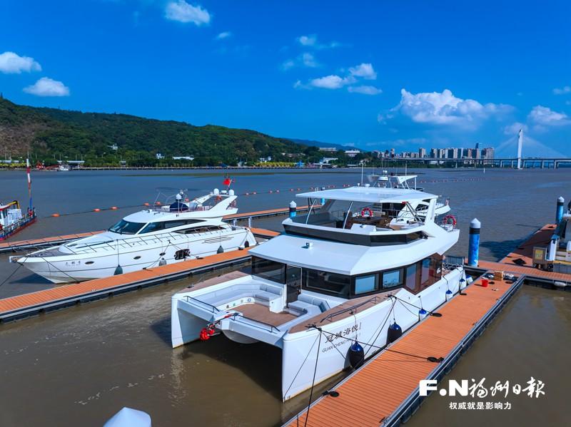 除此之外,水上游艇展区还将迎来今年全新亮相的V55宽体飞桥游艇——冠城海悦1。这艘游艇由台湾游艇制造企业嘉信游艇在珠海生产制造,拥有堪比大型游艇的7.4米超宽船身,一层的沙龙及后甲板空间达到87平方米,上下双层总面积达161平方米。“这是一艘双体游艇,吃水深度仅0.9米,在闽江上航行更为平稳舒适。目前,我们开辟了闽江游览线路,游客可以乘游艇到马尾船政、海峡金融街中央商务区。”户外展区协办方冠城大通相关负责人告诉记者。