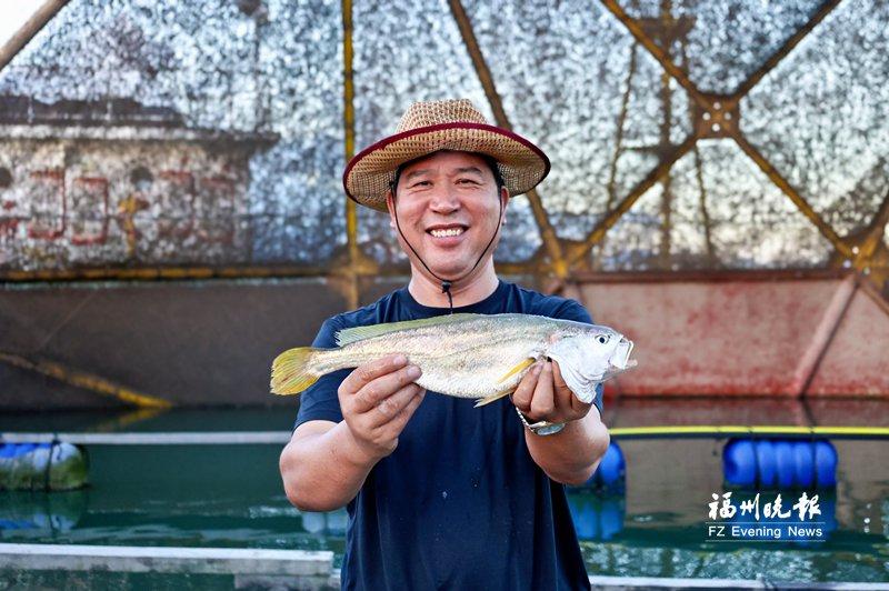 在连江定海湾,两座长60米、宽32米的养殖平台静静漂浮于碧波之上。这是在福州从事造船行业的卢统锋研发的深远海养殖平台“定海湾1号”“定海湾2号”。平台水深17米,养殖水体近1.6万立方米,大黄鱼在此接近野生状态生长,品质显著提升。