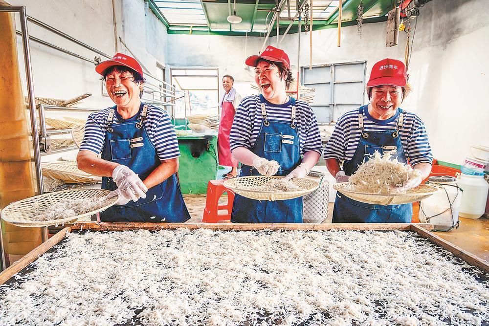 当下,连江县筱埕镇定海湾正值丁香鱼收获旺季,当地村民忙着清洗、盐渍、摊晒刚捕捞上岸的丁香鱼,将其制成银白透亮、鲜香浓郁的丁香鱼干。