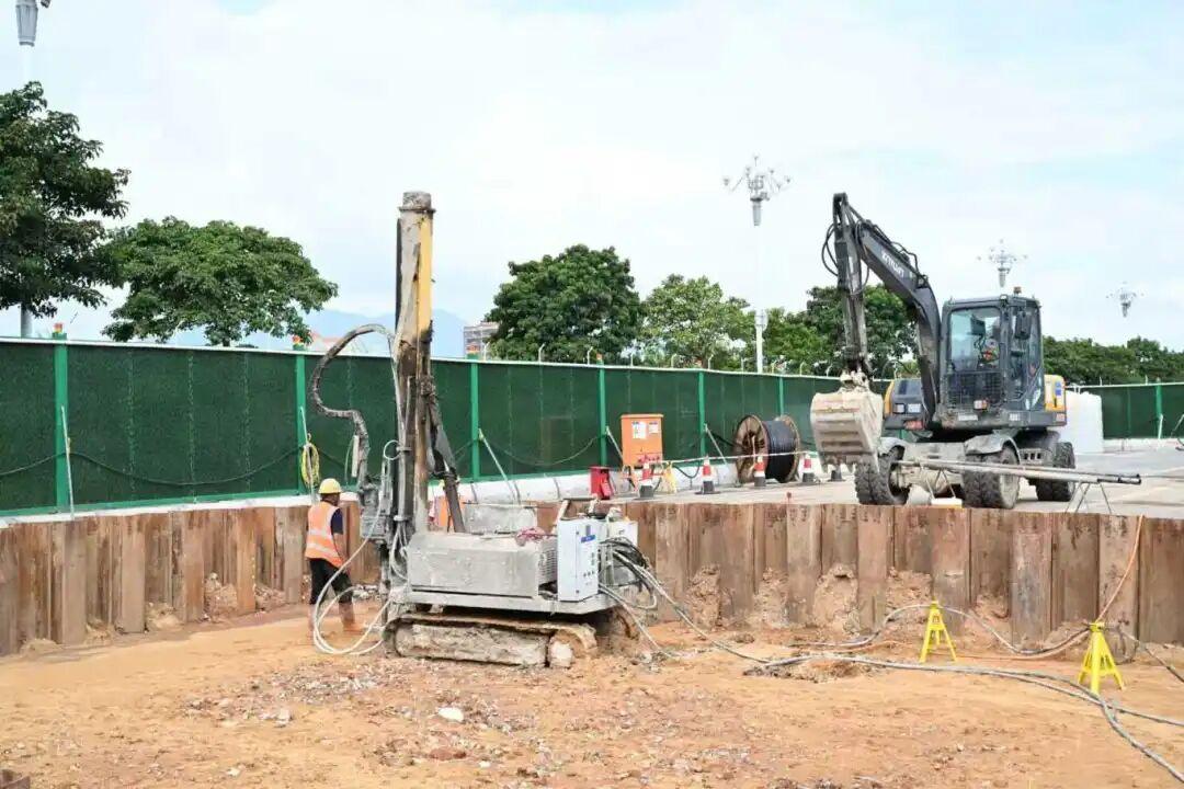 记者在该项目子项目一施工现场看到,工人们正在进行高压旋喷桩施工一旁的钩机则在进行基坑开挖,为后续沉井与顶管作业奠定基础。