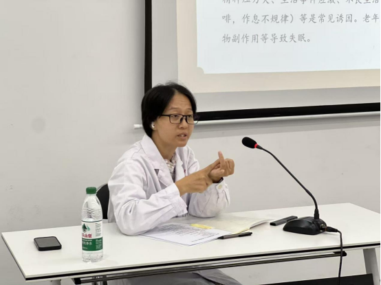 活动特邀国家二级心理咨询师陈明艳担任主讲。围绕“失眠”这一常见议题,陈老师系统阐释其成因、临床表现与诊断要点,融合中西医视角,提出情绪管理、饮食调理、作息优化、睡前放松等一系列实用对策。她以贴近生活的案例,将专业理论转化为可操作的行动指南——深夜难眠时的呼吸技巧、晚餐食材的宜忌选择、睡前的情绪整理方法,让居民在通俗易懂的讲解中收获切实可行的调节策略。