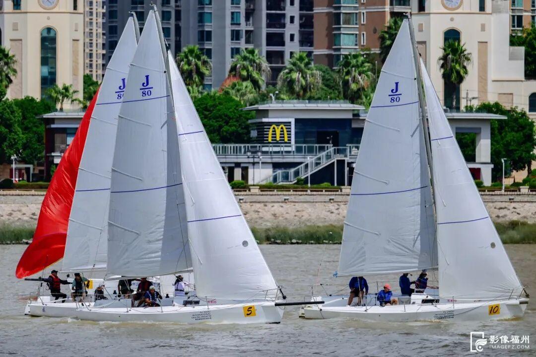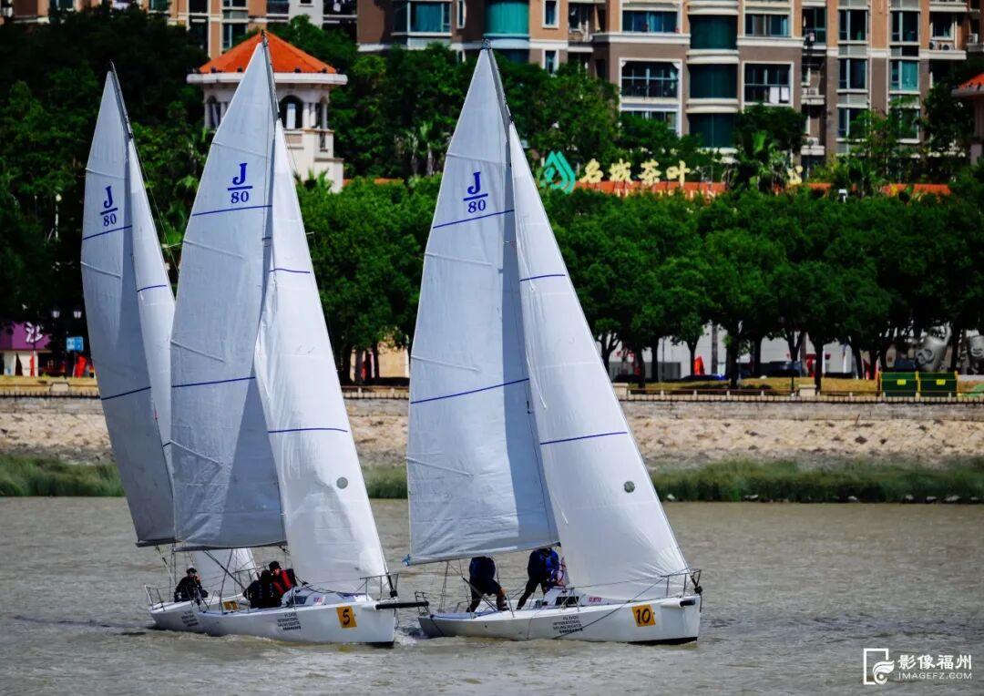 18日上午,冠城游艇码头帆影点点,缤纷的船帆将江面装点得旖旎多姿,选手们精神饱满,解缆、扬帆,在一声发令枪响后,统一驾驶J80帆船向闽江口下游进发,开阔的江面顿时成了竞技场。