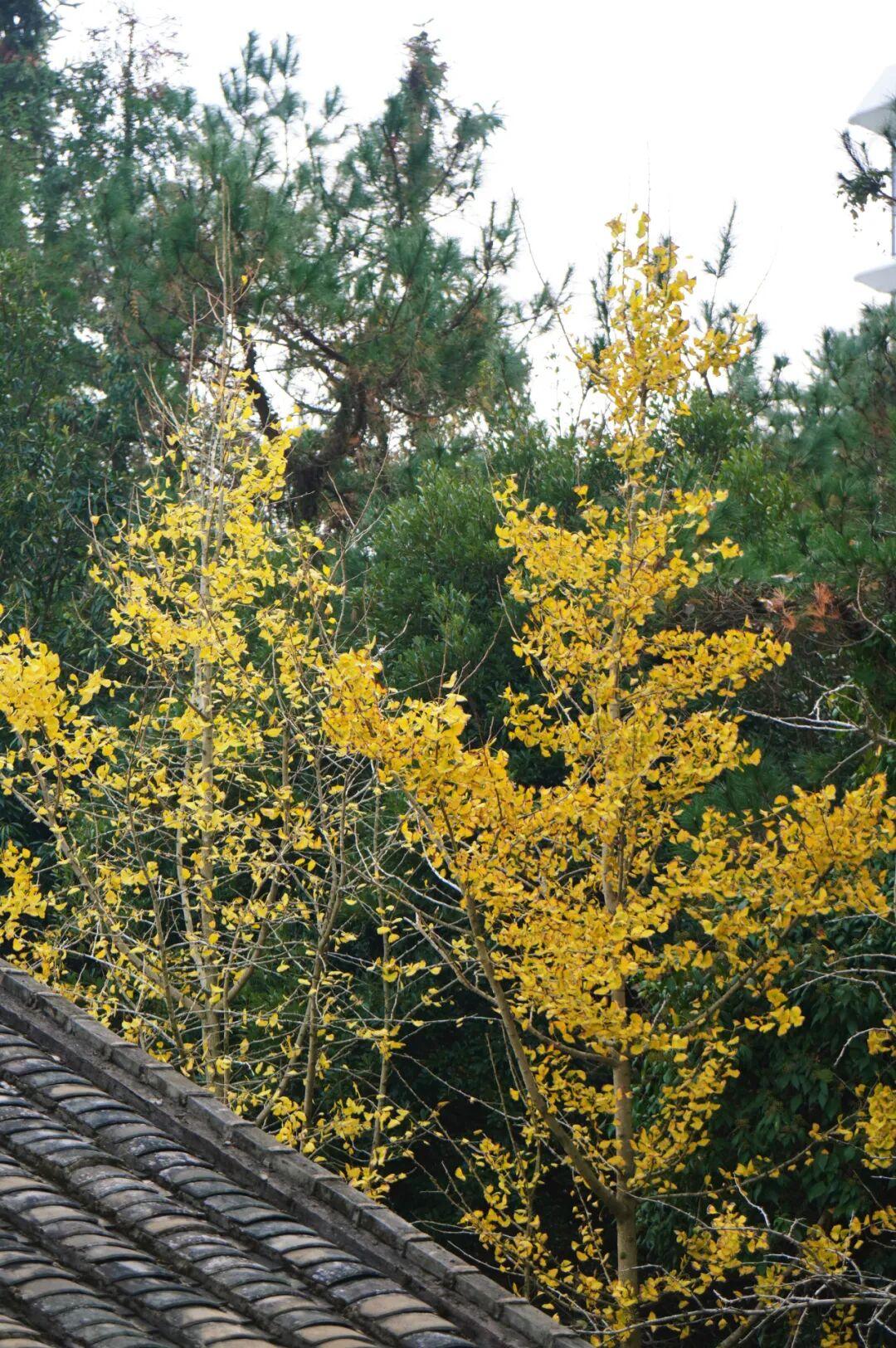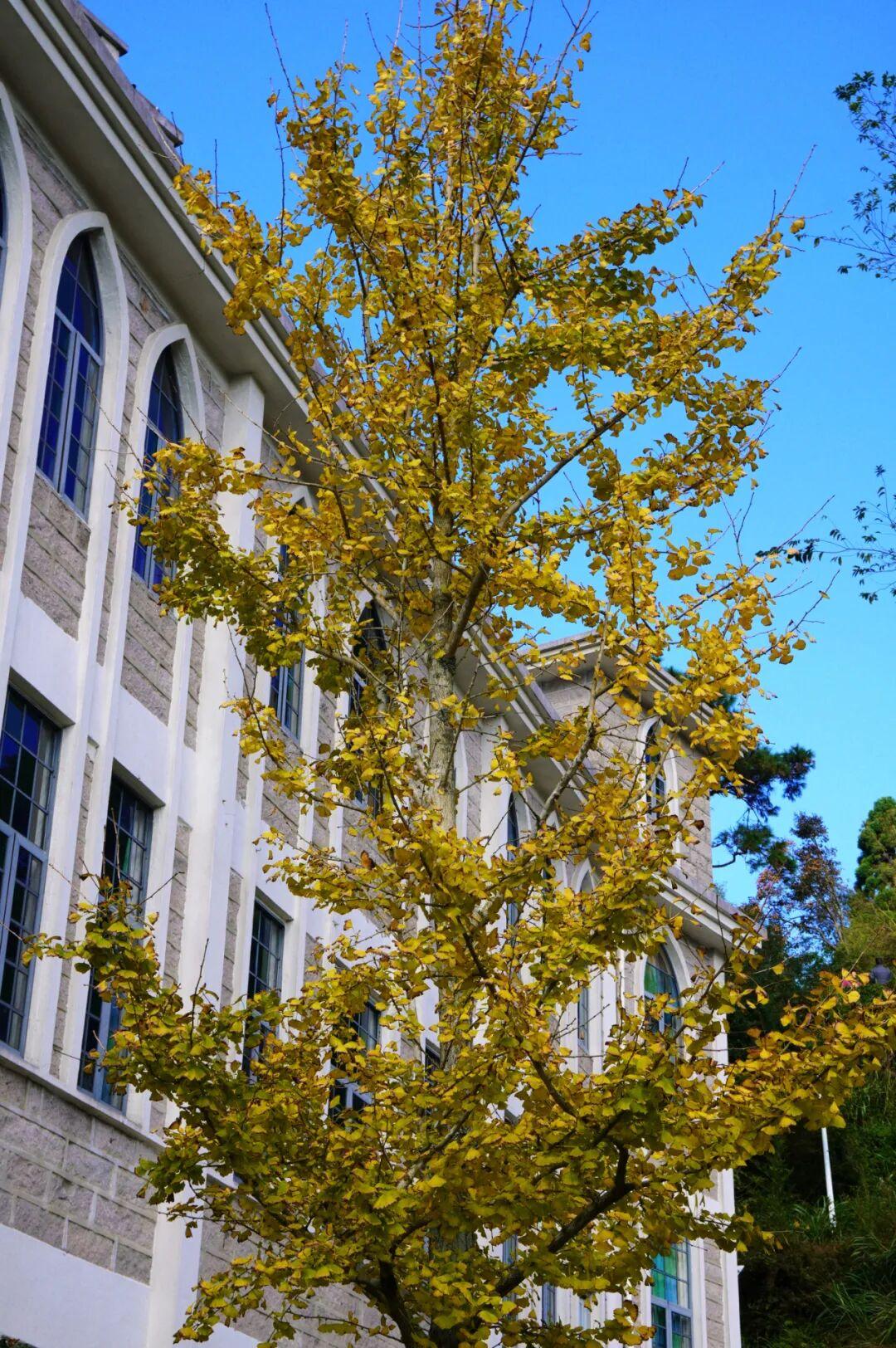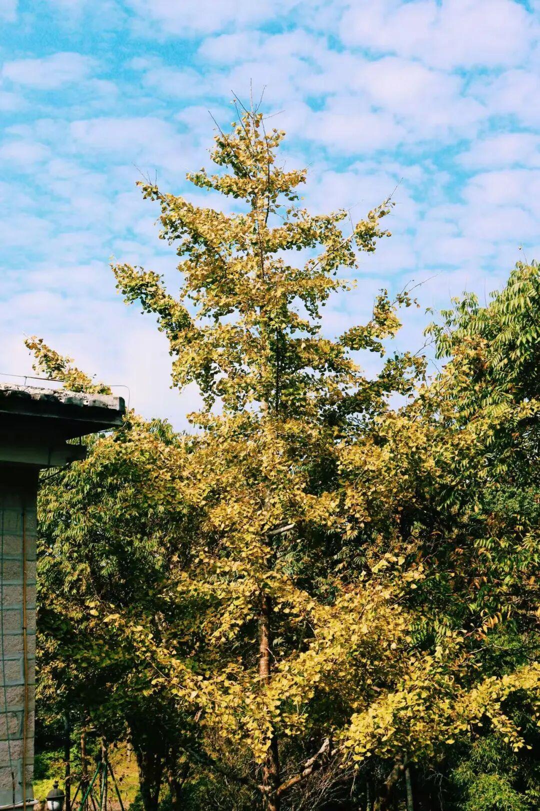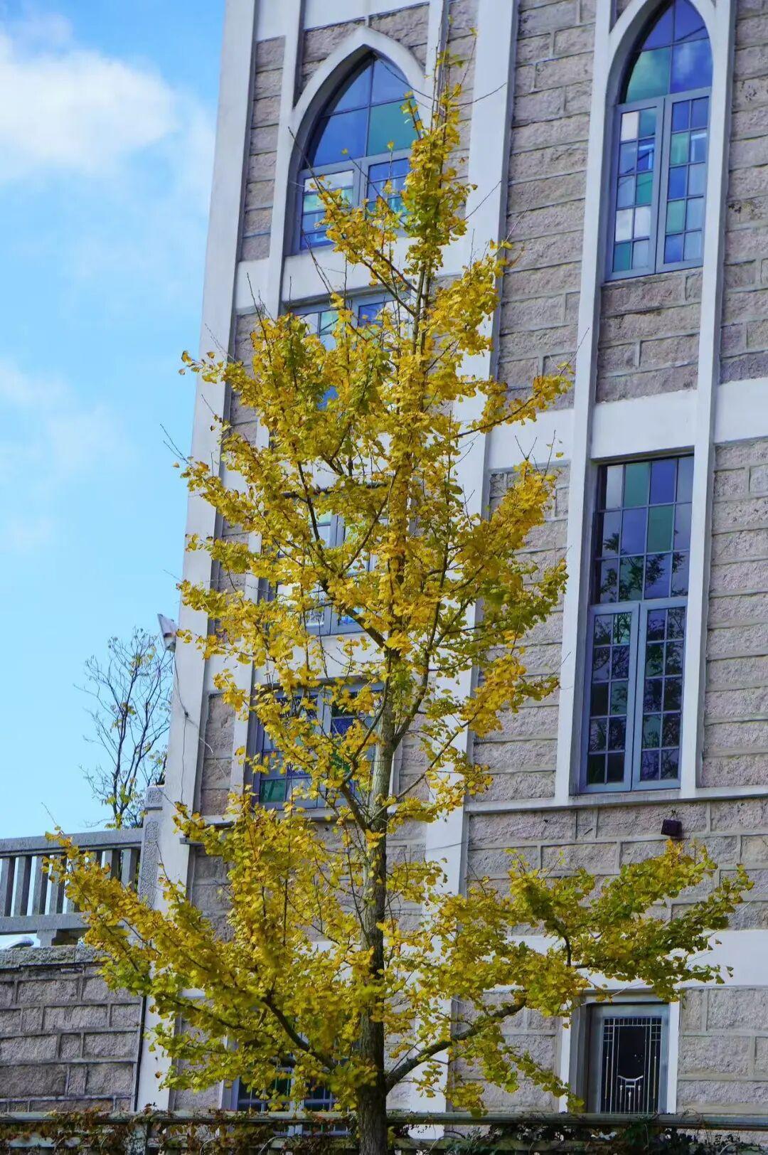 除了蓝天做背景,依偎在旧教堂、古厝周边的银杏树也别有韵味,瞬间将历史感拉满。